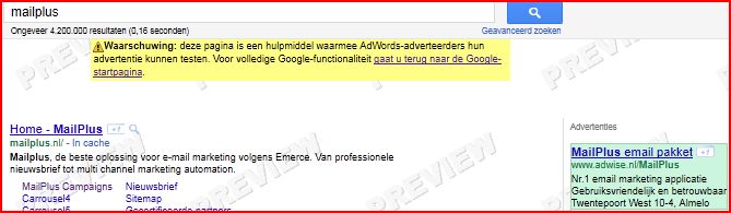 Er bestaan meerdere programma's die advertentieweergave simuleren, het grote voordeel van dit hulpprogramma is dat het binnen het AdWords account beschikbaar is. Wijzigingen kunnen dus direct worden doorgevoerd.